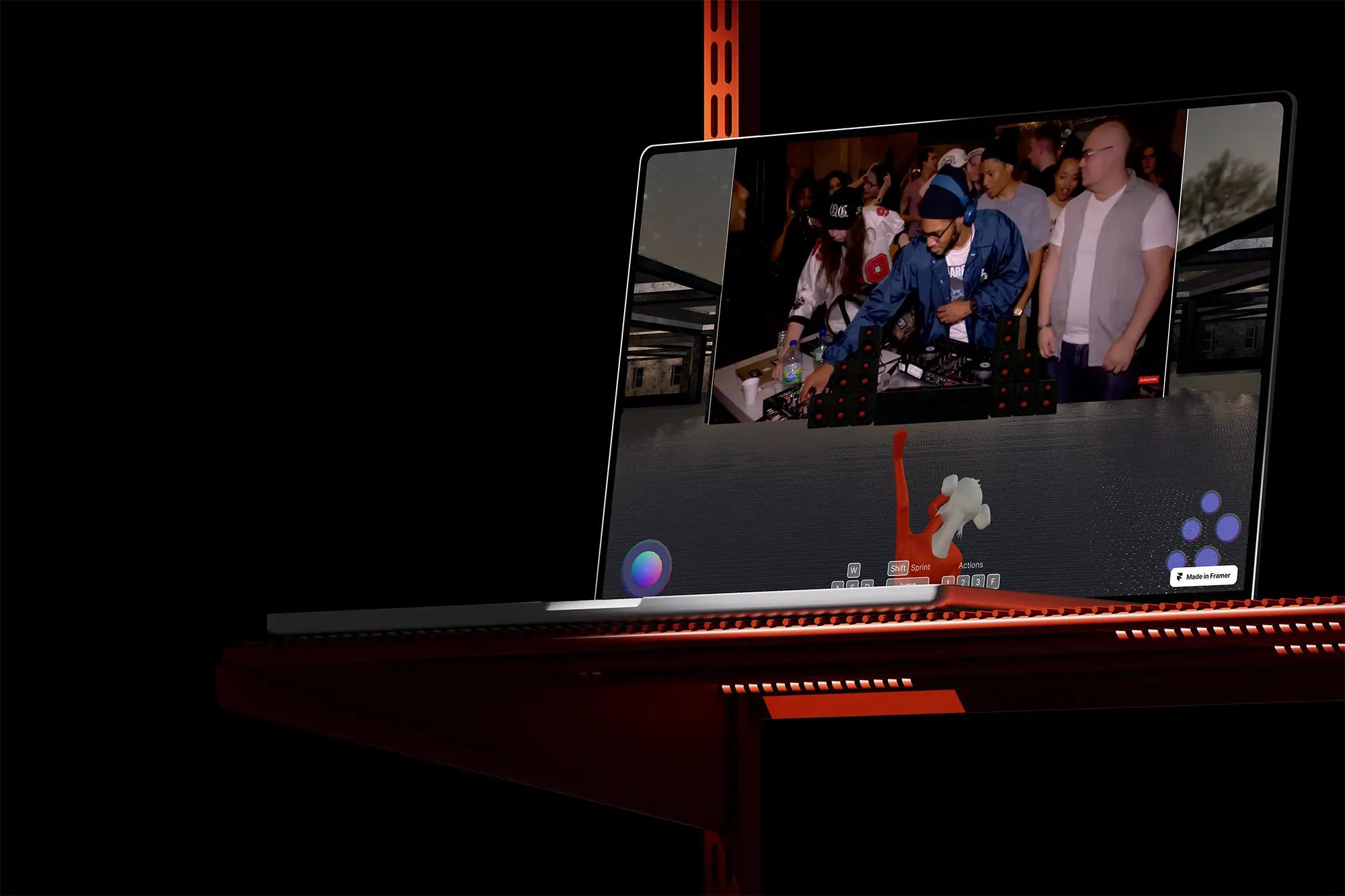A Framer 3D interactive experience set in a virtual space where you control a character — move around, jump, backflip, or throw on some dance moves. Inspired by the Boiler Room.